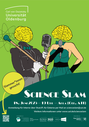 Gesucht werden noch Slammer*innen aus den Gesellschafts- und Geisteswissenschaften. Wer sich dafür interessiert, findet alle Infos dazu und auch den Termin für den Vorbereitungsworkshop auf der Homepage.