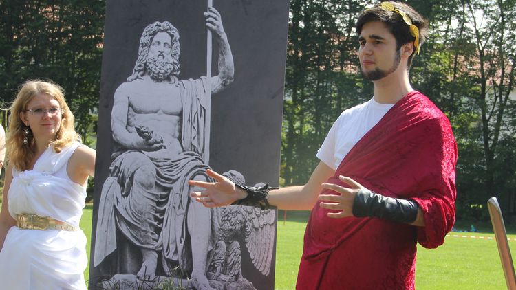 Nach antikem Vorbild gab es zudem musische Wettbewerbe und kultische Handlungen zu Ehren des Olympischen Zeus. Auch das klassische Wagenrennen durfte selbstverständlich nicht fehlen. Siegreich war Kaiser Nero, dargestellt von Geschichtsstudent Marco Mertens.
