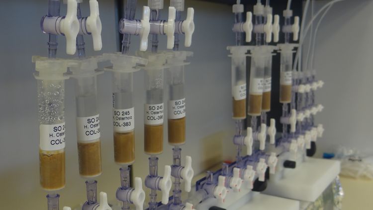 Die Konzentration dieser Substanzen im Meerwasser ist zwar winzig, doch aufsummiert über alle Ozeane ergeben sich gewaltige Mengen: „Das gelöste organische Material bildet einen der größten Kohlenstoffspeicher der Erde“, erläutert Prof. Dr. Thorsten Dittmar. „Im Meerwasser gelöst befindet sich mehr Kohlenstoff als in allen Wäldern der Welt zusammen.“ Der Geochemiker ist dieser rätselhaften Mixtur seit langem auf der Spur. Dittmar, der der aktuellen Rangliste „Highly Cited Researchers“ des Unternehmens Clarivate Analytics zufolge zu den weltweit meistzitierten interdisziplinären Wissenschaftlern zählt, leitet die Forschungsgruppe für Marine Geochemie am Institut für Chemie und Biologie des Meeres (ICBM). Seit nunmehr zehn Jahren ist die Arbeitsgruppe in Kooperation mit dem Max-Planck-Institut für Marine Mikrobiologie an der Universität Oldenburg beheimatet. Er und sein Team haben wesentlich dazu beigetragen, dass sich einige Unklarheiten um die mysteriösen Substanzen mittlerweile zu lichten beginnen. Rätselhaft waren bislang vor allem zwei Fragen: Woraus besteht das gelöste Material? Und warum existiert es überhaupt – und wird nicht wie andere organische Substanzen schnell von Mikroben verwertet?