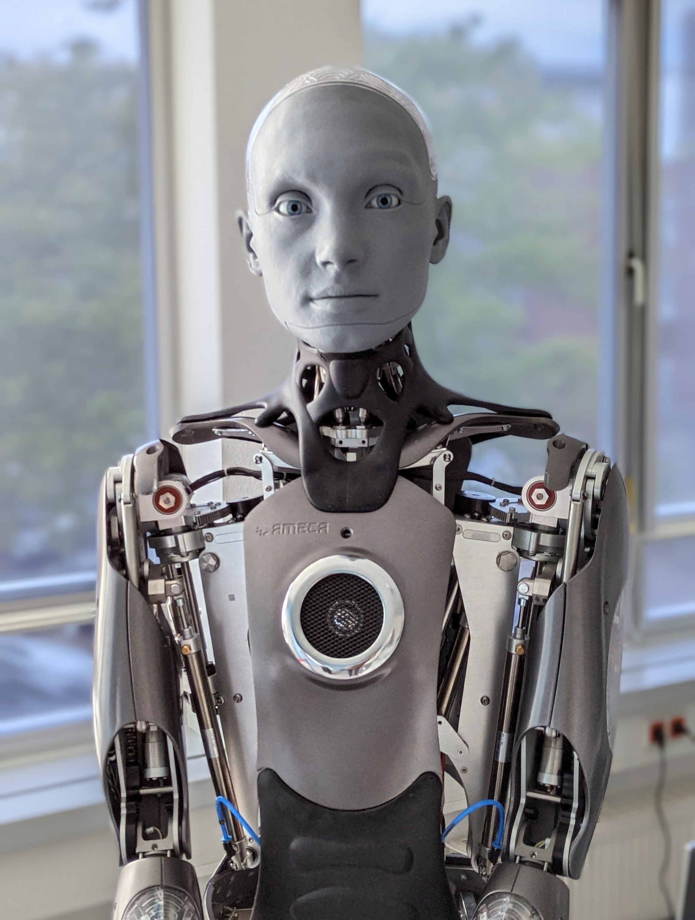Beim Vortrag über die Rolle des Geschlechts von Robotern ist auch Roboter Ameca dabei und berichtet aus ihrer Perspektive. Foto: OFFIS - Institut für Informatik