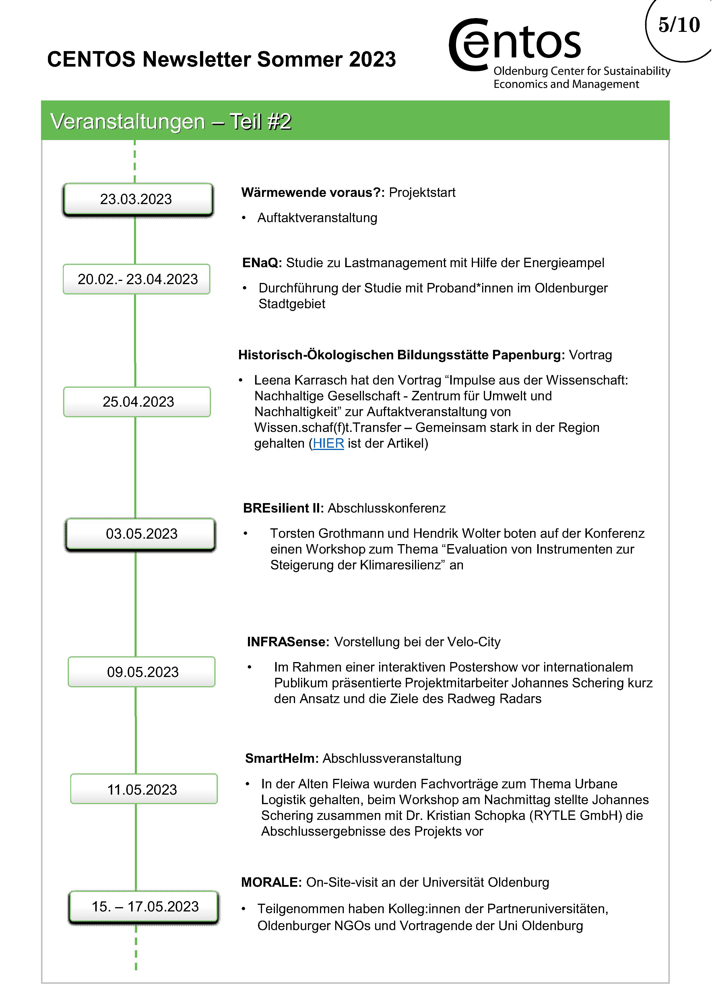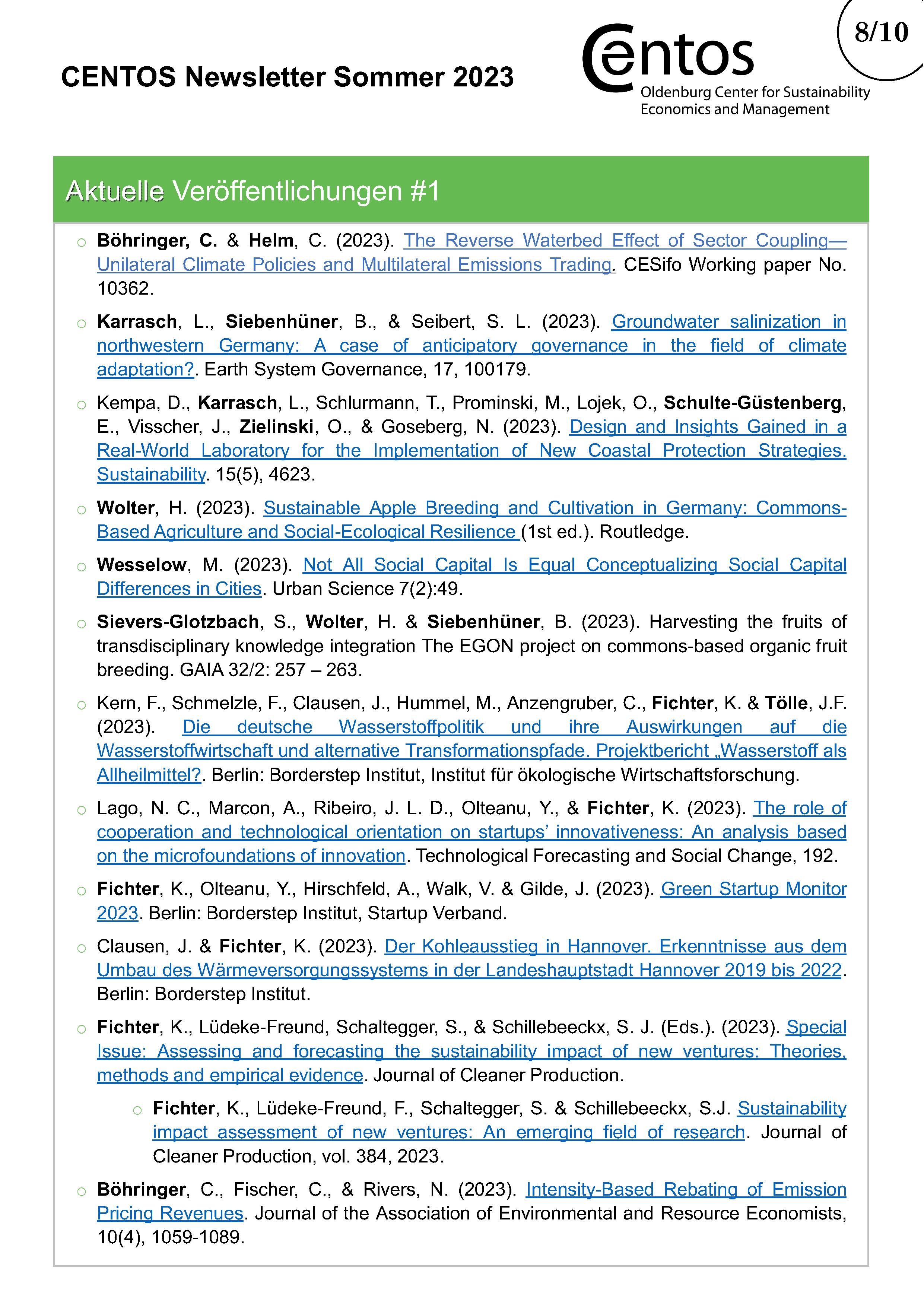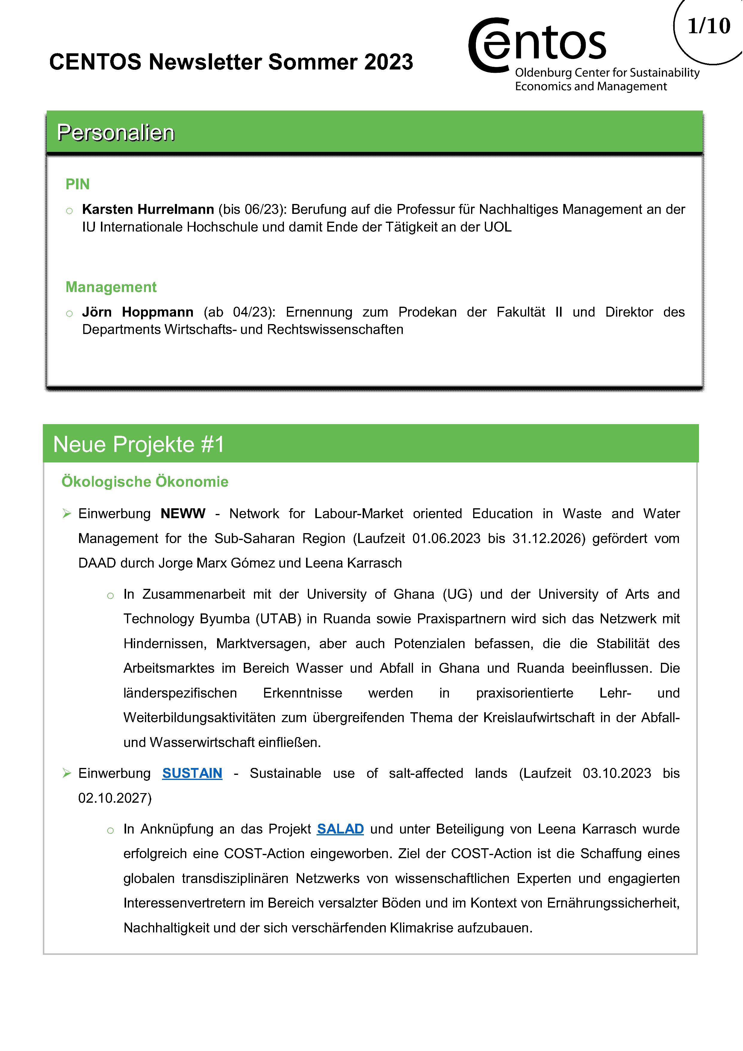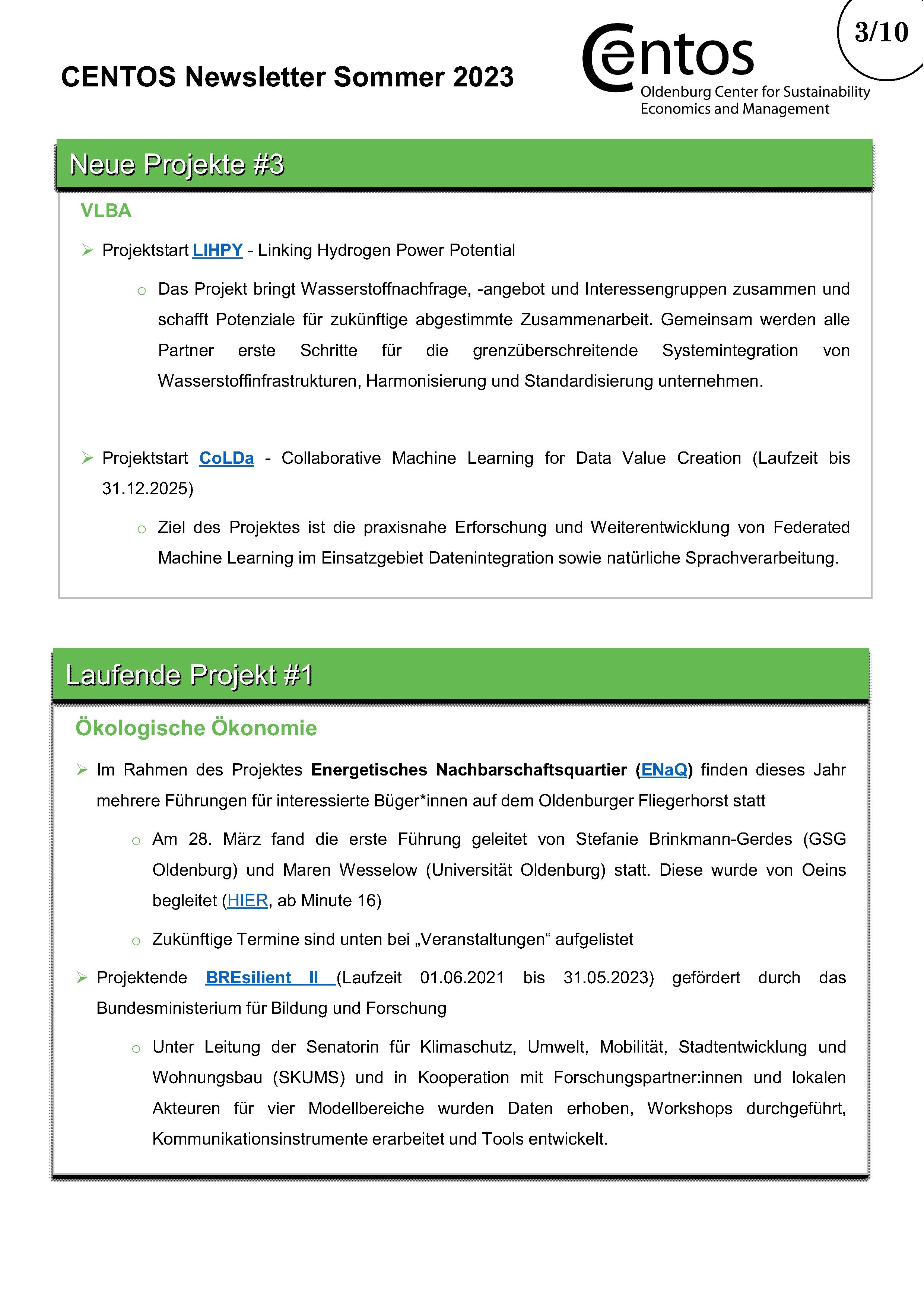 Im halbjährlichen CENTOS-Newsletter werden Informationen über bestehende und neue Projekte der CENTOS-Arbeitsgruppen und Lehrstühle veröffentlicht. Daneben gibt der Newsletter einen Überblick über die Publikationen der Mitglieder mit Verlinkung zum Nachlesen. Am Ende des Newsletters gibt es Platz für besondere Ehrungen für Projekte oder Publikationen.