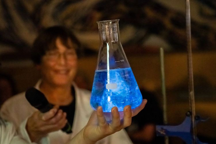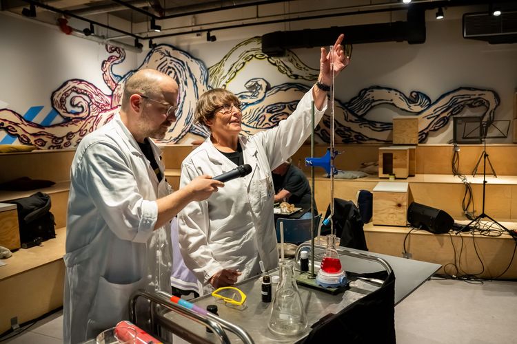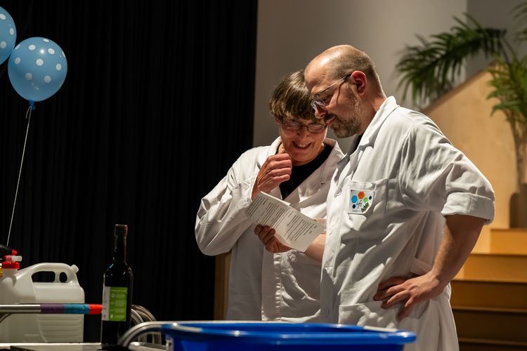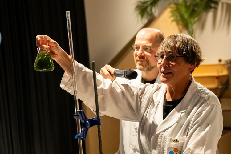 Eindrucksvolle Experimente, knifflige Fragen zur Oldenburger Forschung und tolle Live-Musik - all das konnten die Gäste der Quiz Night x UOL am 18.10.2024 im CORE Oldenburg erleben. Anlässlich des Jubiläums hat die Universität einen der regelmäßigen Quizabende dort übernommen. In vier Runden mit unterschiedlichen Kategorien wurden thematisch die Institute und Forschungseinrichtungen abgeklappert. Die Teams haben einen Einblick in die vielfältigen Themen der Universität bekommen und konnten coole Gewinne abstauben. Aus unserem Institut hat Dr. Alexander Weiz, wissenschaftlicher Mitarbeiter in der Anorganischen Chemie unterstüzt durch Dr. Ingeborg Buschmann, einen immer gern gesehenen Gast am Institut, beim Auflösen der Fragen mitgewirkt.