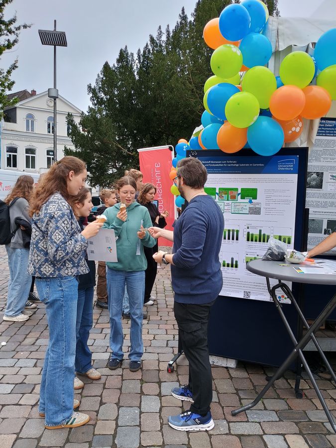 Ob Labor, Moor oder auch sonst überall in der Welt gilt: Stoffe haben Eigenschaften und Stoffe reagieren in gewisser Art und Weise miteinander und aufeinander. Am Chemie-Stand für Klein und Groß werden grundlegende Eigenschaften von Gasen und Flüssigkeiten sowie ihre Wechselwirkungen thematisiert. Mehrere Mitmachexperimente eröffnen den Zugang zu naturwissenschaftlichen Fragestellungen, die auf den ersten Blick unsichtbare Zusammenhänge sichtbar machen.