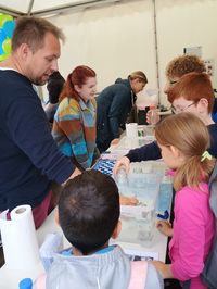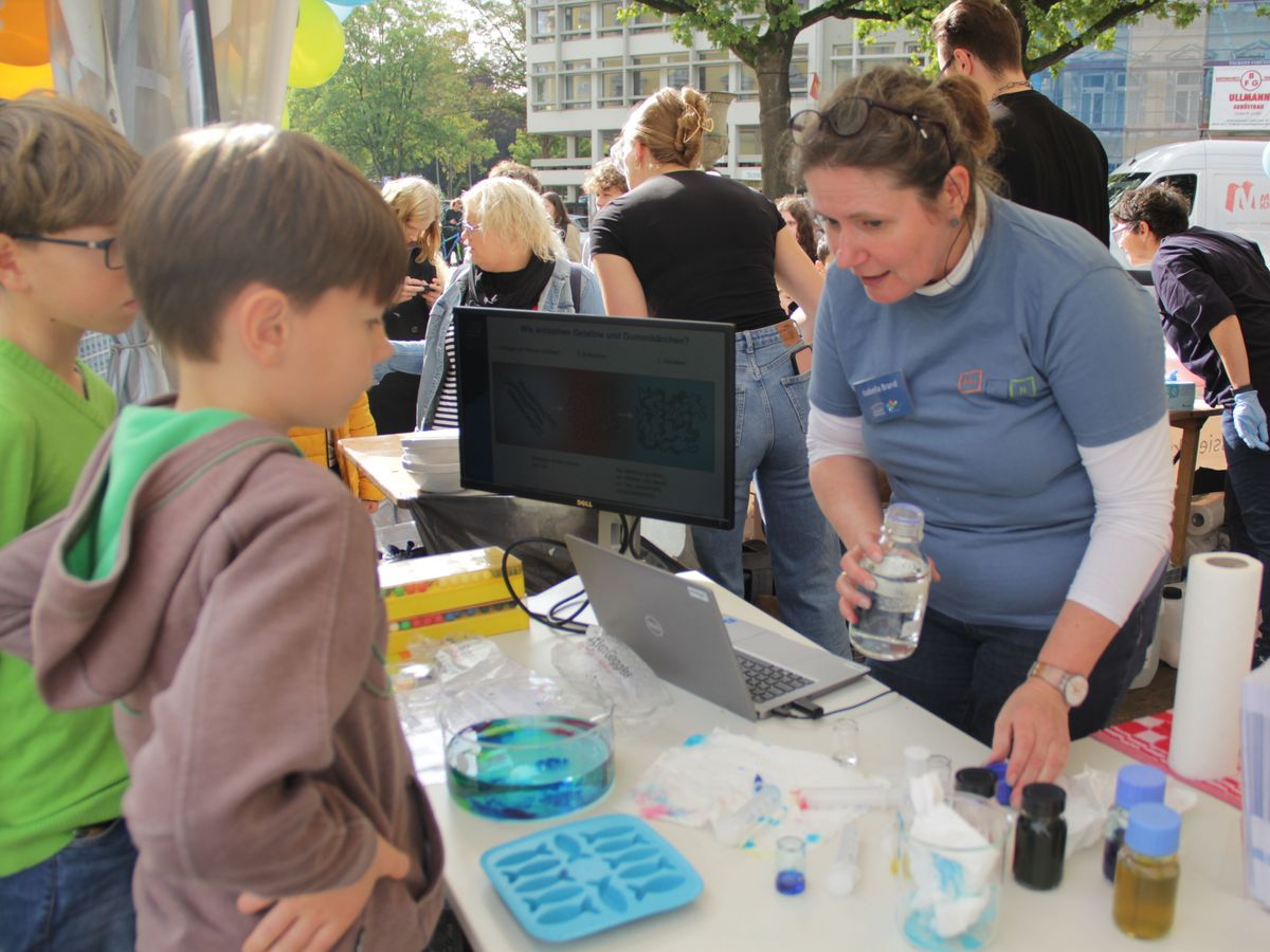 Stoffe, Räume und Kräfte im Experiment: Mitmachaktionen vorbereitet und geleitet durch die Mitarbeitenden der Arbeitsgruppe Prof. Dr. Timm Wilke.