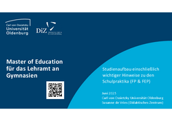 Hilfreiche und ergänzende Informationen in Zusammenhang schulpraktischer Module finden sich zudem auf den Internetseiten der Niedersächsischen Landesschulbehörde.