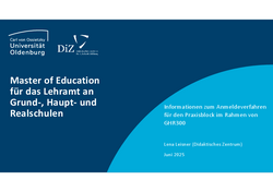 Hinweis: Die Zuweisungsregion für den Praxisblock beschränkt sich auf Schulen in einem Umkreis von 70 Min. Fahrzeit (mit dem ÖPNV) ab dem Oldenburger Hauptbahnhof.