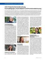 Universitätsgesellschaft Oldenburg Die Universitätsgesellschaft Oldenburg e. V. (UGO) zeichnet jährlich hervorragende akademische Leistungen aus. Den mit je 5.000 Euro dotierten „Preis für exzellente Forschung“ erhalten die Kunstpädagogin Michaela Kaiser und die Psychologin Mandy Roheger. An Antonia Wallbraun aus der Chemiedidaktik geht der Promotionspreis (2.000 Euro), der in Gedenken an den früheren UGO-Vorsitzenden Gerhard Wachsmann verliehen wird. Die Biologin Maren Striebel erhält den Preis für hervorragende Promotionsbetreuung (2.000 Euro). -