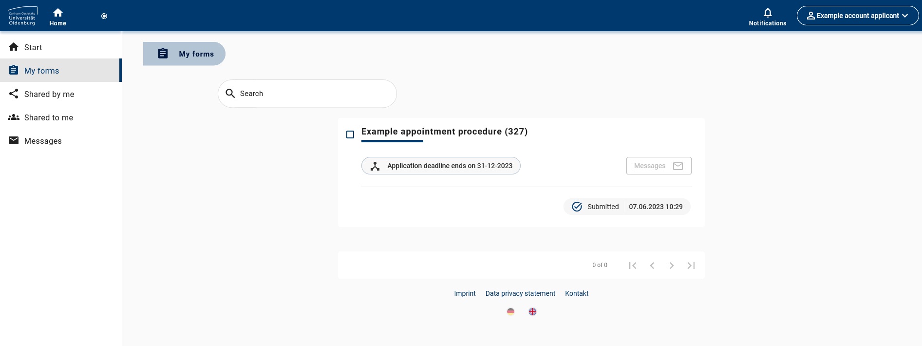 In most cases, we will communicate with you via the portal. The e-mail address registered in your profile is used in this regard for further legally binding communication in the procedure (inquiries, possible invitations to hearings/interviews, rejections, etc.). You will be informed of the receipt of a new message in the portal via a system message to this e-mail address.