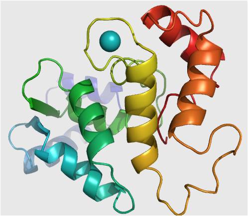 Neuronal calcium sensor (NCS) proteins constitute a family of proteins, which can be further subdivided into five subfamilies. A common feature of NCS proteins is the presence of 4 EF-hand motifs (calcium binding region), which consist of a loop region (12 amino acids) that is flanked by two a-helices (see figure). Almost all NCS proteins harbour at the N-terminus a consensus site for cotranslational myristoylation. Prototype of the NCS protein family is recoverin that is mainly expressed in the vertebrate retina. Another subfamily contains the GCAPs (guanylate cyclase-activating proteins) that regulate the activities of membrane bound guanylate cyclases in the vertebrate retina.