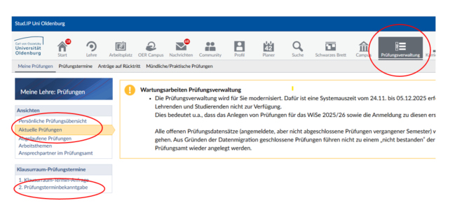 You can now access the new examination administration EXA via StudIP and the link embedded there. The old examination administration POS is managed exclusively by the Examinations Office. If you have any questions, please contact p-amt.exa.support@uni-oldenburg.de