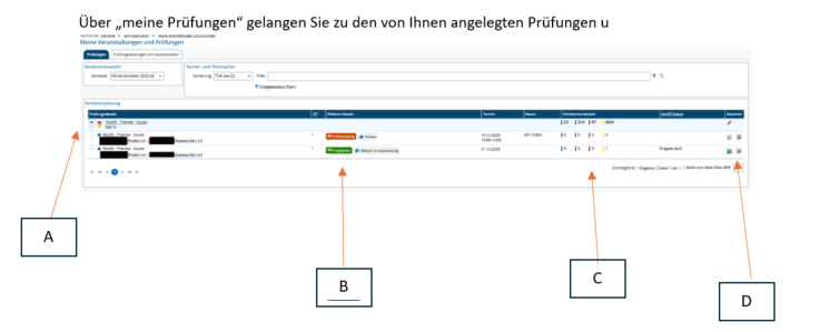 B: Status of your examination and the type of examination. Students can only register for the exam if it has been approved by the Examinations Office.