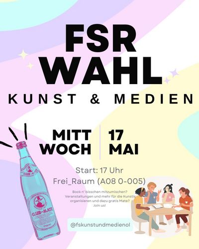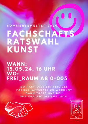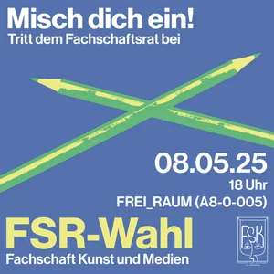 After the election on 8 May 2025, 20 art students are now your elected representatives on the Student council for Art and Media! You can find a list of all council members in the Community Forum. Would you like to become active in the FSR yourself? Then come along to one of our meetings or write to us by email or on Insta. New people are always welcome!