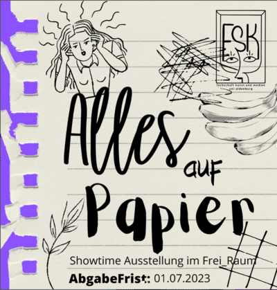 The works will be collected in the frei_raum until 24 June and can be handed in there on Tuesdays 2-4 pm (KunstCafe), Wednesdays 2-4 pm (Tee&Aquarell) and Fridays from 10 am to 12 pm (FSR meeting) or by arrangement. Please remember to write your name on the back, for example.