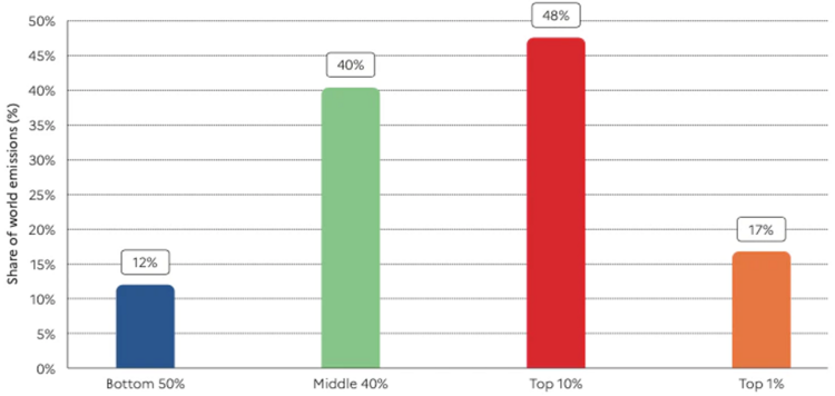 The richest 10% of the world emit almost half of all emissions. The richest 1% alone even emit 17%!