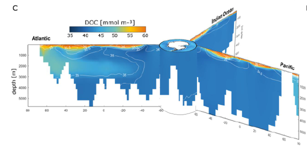 Our paper in Global Biogeochemical Cycles is finally published: Mechanisms underpinning the net removal rates of dissolved organic carbon in the global ocean ! In this paper, we show that microbial processes can explain the spatial distribution of dissolved organic matter in the ocean. A central mechanism is the nutrient limitation of bacteria, which hampers degradation of organic matter and leads to accumulation of organic carbon in seawater. These results suggest that the marine dissolved organic carbon reservoir is much more dynamic on short time scales than previously thought. It may play an important role in biological feedback processes in the marine carbon cycle in a changing climate.