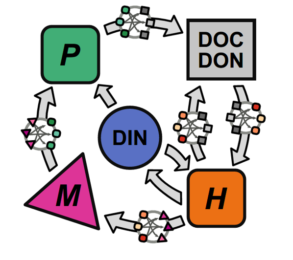 New Preprint online: Interactions between algae and bacteria are ubiquitous in the marine environment, and encompass exchange of substrates, metabolites and relevant vitamines. Biogeochemical models, however, focus mainly on resource competition. With the newly developed Microbial Community Model MCoM, we can now cover a wide range of interactions in diverse microbial communities, and assess the impact of these community level effects on elemental cycles.