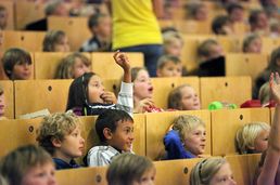 It's not directly a moment that I remember best - rather a general impression, something like this: Suddenly there are over 800 children sitting in front of you, I've never had an audience that big. And I've never had such a great audience either. It was really nice to see how interested the children were, how enthusiastic, and how directly they reacted to different parts of the lecture. And they asked so many questions! For me: KinderUni? Any time again!
