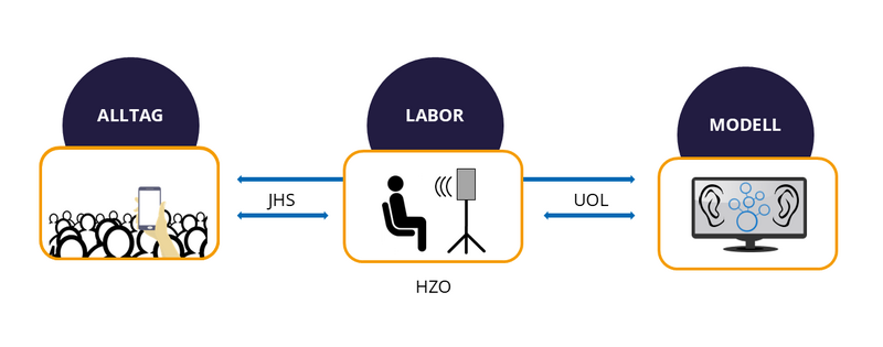 By interlinking laboratory measurements, modelling and everyday analyses, the influence of individual factors of hearing impairment as well as their interaction in the form of good/poor speech comprehension or listening effort in different acoustic situations is to be investigated in a differentiated manner and the HG adaptation improved.