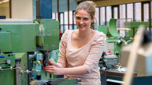 Welding, turning, soldering: Carolin Harms is an apprentice precision mechanic. The 21-year-old feels at home in the workshop - where she can do practical work.