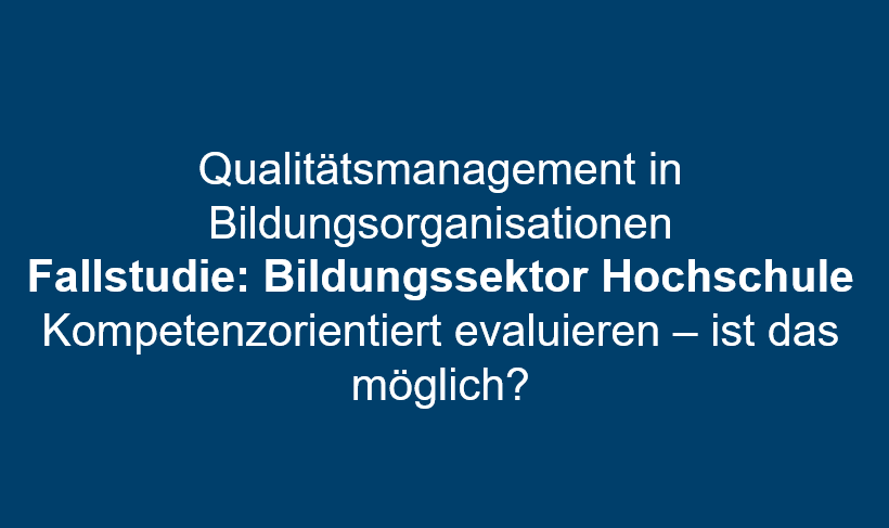 ![]() | Quality management in educational organisations: Case study: Higher education sector, competence-orientated evaluation - is it possible? |
