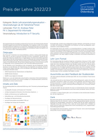 Prof Dr Andreas Peter from the Department of Computing Science received the Teaching Award in the category "Best course evaluation (40 or more participants)" for his course "Introduction to IT Security". Lecturers were able to apply for this category themselves with the results of their course evaluation.