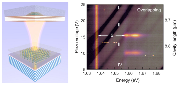 With the utility of an atomically thin MoSe2 semiconductor and an open optical cavity, our team (Quantum Materials, IfP) achieves in-situ actively-tunable upconversion luminescence, and demonstrates the nonlinear upconversion as a unique, efficient injection scheme of polariton populations.