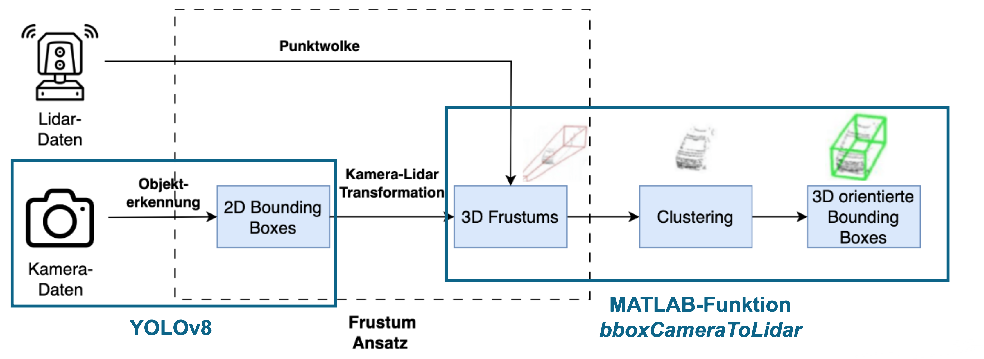 In the case of road users, all other road users in the vicinity of the ego vehicle must be classified and localised so that the trajectory can be planned. The overarching goal of this prototype is to recognise other road users using the sensor setup created by the user.