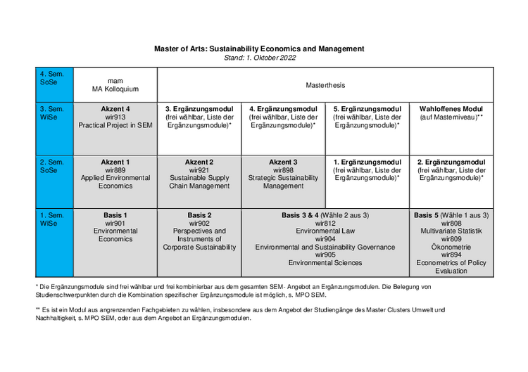 In the second and third semesters, the course content is accentuated. In addition to the four obligatory accent modules, which also deepen aspects of economics, business administration, and the social and natural sciences, students can choose a total of six supplementary modules.