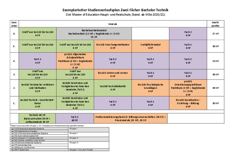 | Tec 030 | Didactic foundations of technical education | Design and evaluation of learning processes in technical education. | 6 CP |