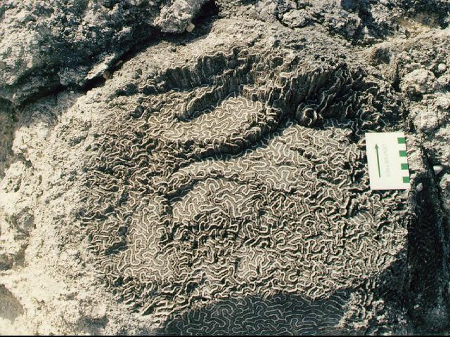 An intense geologist studying a raised coral reef put in place during the sea level high-stand of the Sangamon some 125 000 years ago. |