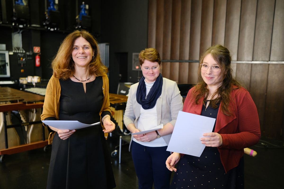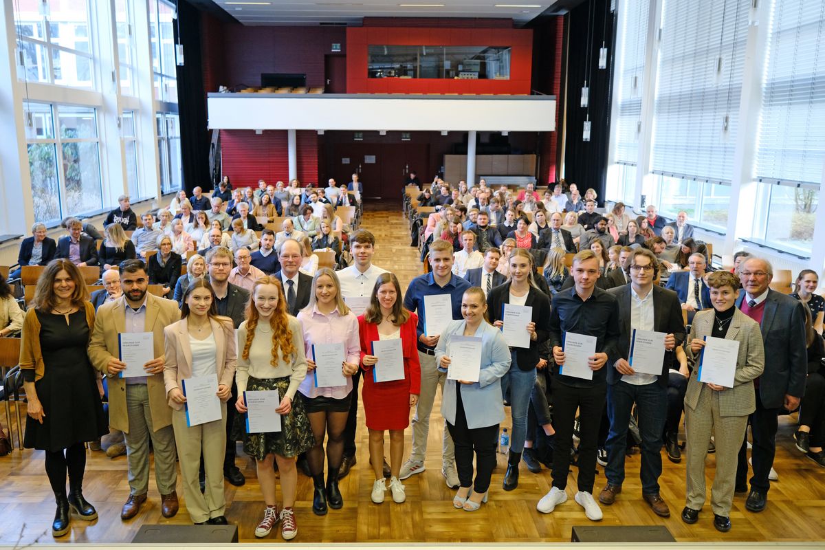 In einer Feierstunde am Freitag, 24. März, hat die Fakultät IV Human- und Gesellschaftswissenschaften der Universität Oldenburg 205 Absolventinnen und Absolventen verabschiedet. Insgesamt erlangten 169 Bachelor- und 24 Masterstudierende im vergangenen Studienjahr ihren Abschluss. Außerdem verlieh die Fakultät neun Promotionen sowie drei Habilitationen. Rund 35 Absolventinnen und Absolventen nahmen die Urkunden persönlich entgegen. Studiendekan Prof. Dr. Wolfgang Weiß moderierte die Feier, Dekanin Prof. Dr. Dagmar Freist und Absolventin Annalena Kock, Master Ökumene und Religionen, sprachen ein Grußwort. Zum Rahmenprogramm gehörten musikalische Darbietungen der Band „Schlagwerk Ossietzky“ des Instituts für Musik sowie ein Improvisationstheater der Gruppe „Improduction“.