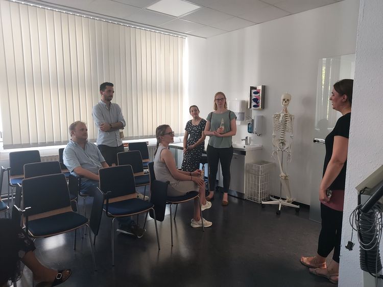 Zum ersten Mal fand am 08. September 2023 ein Treffen des Alumni-Netzwerks Humanmedizin der Fakultät VI Medizin und Gesundheitswissenschaften statt. Die ehemaligen Studierenden – größtenteils aus der ersten Kohorte des Studiengangs – besuchten zusammen mit dem Dekan Prof. Hans Gerd Nothwang und dem Studiendekan Prof. Karsten Witt unter anderem das Klinische Trainingszentrum (KTZ) und die neuen Hörsäle im Gebäude V03. Die Absolvent*innen, die jetzt alle als Ärzt*innen in Weiterbildung in Oldenburg und der Region tätig sind, freuten sich über die interessanten Einblicke in die Weiterentwicklung des Modellstudiengangs Humanmedizin und der Fakultät VI.