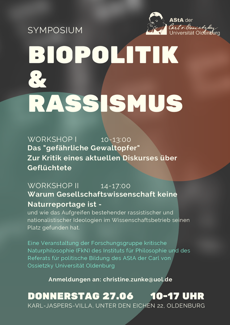15 – 18 Uhr : Lektüre-Workshop: Max Horkheimer - „Akademisches Studium“ (A 1, 0-007), um Anmeldung an fsphilo@uol.de wird gebeten.