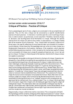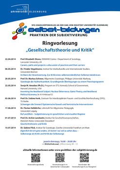 Im Rahmen der Ringvorlesungen werden Gastwissenschaftlerinnen und Gastwissenschaftler der unterschiedlichen Disziplinen geladen, die bereits einschlägig zum Thema und Themenumfeld geforscht haben. Bereits im Jahr 2007 wurde eine erste Ringvorlesung zum Thema Praktiken der Subjektivierung an der Carl von Ossietzky Universität durchgeführt.