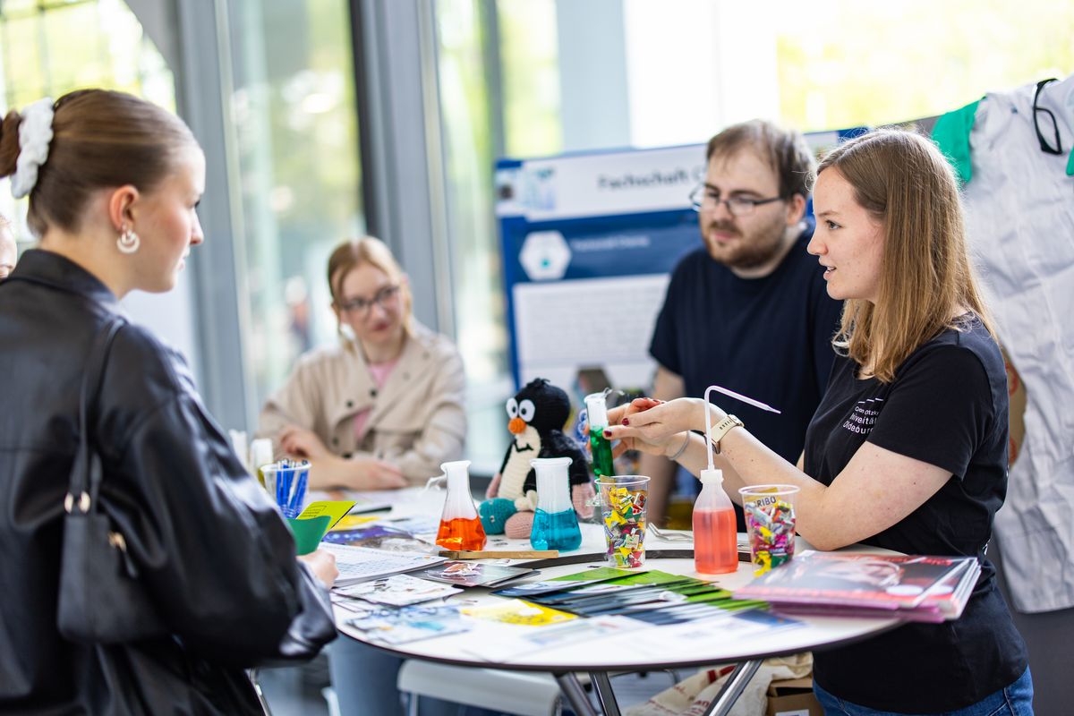 Auf dem Hochschulinformationstag 2025 wurden Fotoaufnahmen angefertigt, die wir für die Berichterstattung (Pressemitteilungen, Uni-Webseite, Facebook, Twitter, LinkedIn, Instagram), zu Dokumentations- und Informationszwecken sowie zur Bewerbung des Hochschulinformationstag im kommenden Jahr verwenden möchten. Diese Aufnahmen sind mit der bildlichen Darstellung von anwesenden Personen verbunden, wobei die Personenauswahl zum Teil zufällig erfolgte.