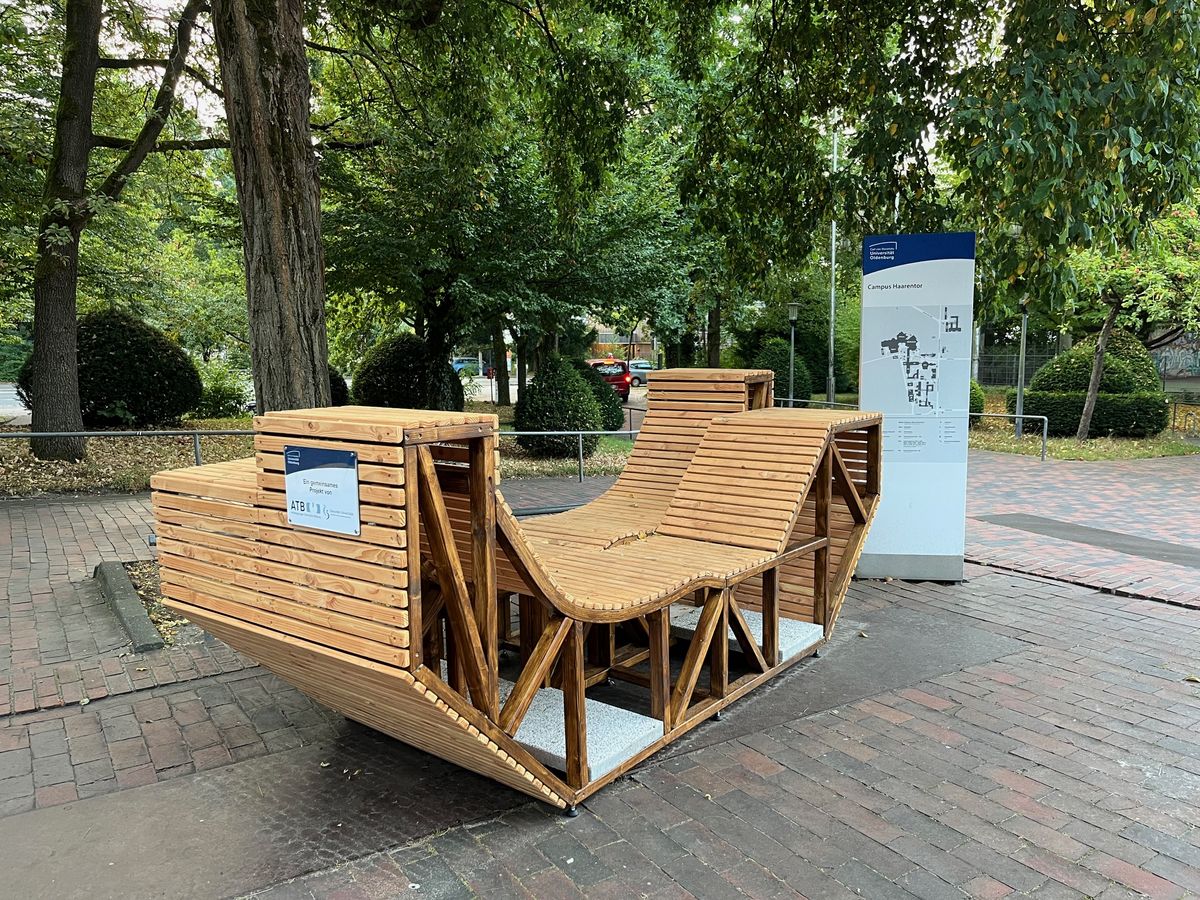 In Kooperation mit der Arbeitsgruppe Technische Bildung (ATB) haben wir drei Outdoor-Sitzmöbel gebaut und auf dem Mensavorplatz des Campus Haarentor aufgestellt. Die Sitzmöbel stehen allen Studierenden zur Verfügung, sollen zur Verbesserung der Aufenthaltsqualität beitragen und Orte der Entspannung, des Austausches und des gemeinsamen Lernens und Arbeitens sein.