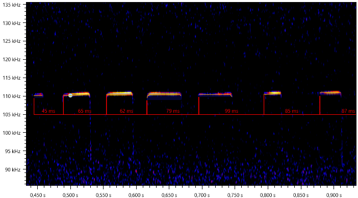 Das Sonogramm des Rufs der Kleinen Hufeisennase zeigt eine markante Frequenzstruktur.