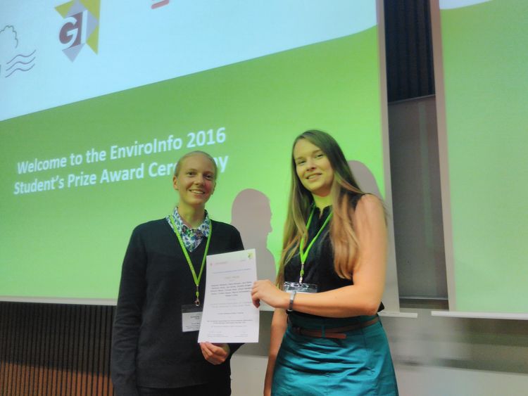 Auf der internationalen Jahrestagung "EnviroInfo 2016" der GI-Fachgruppe Umweltinformatik erhielt am 14.9. die Oldenburger Projektgruppe "POWDER - Profit Optimization with Distributed Energy Resources" den ersten Preis für die beste studentische Arbeit. Als Repräsentantinnen der 12-köpfigen Projektgruppe konnten Stefanie Holly und Almuth Meier nicht nur den mit 1000€ dotierten Preis entgegen nehmen, sondern auch ihr Thema der Optimierung eines Virtuellen Kraftwerks einem interessierten Fachpublikum nahe bringen. Lesen Sie auch: