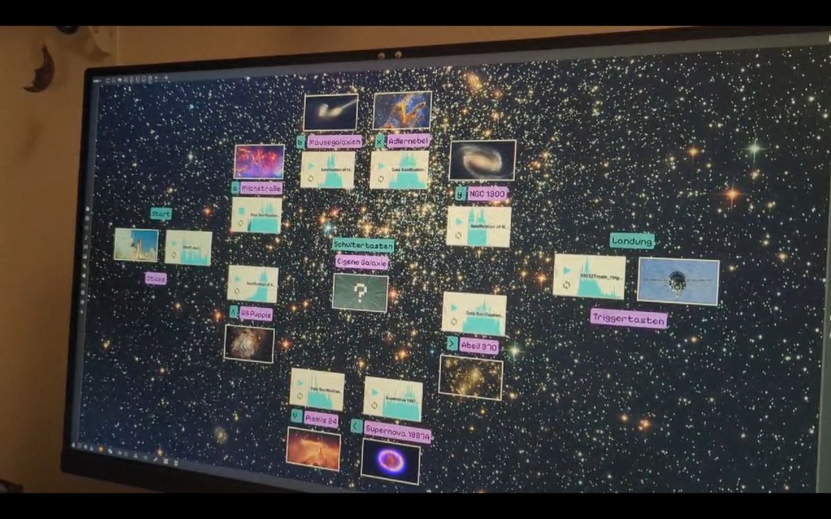 In dieser Übung wurden individuelle Instrumente, Klanginstallationen und andere „Musikmachdinge” entwickelt. Dazu wurde mit verschiedenen Steuerungen und Schnittstellen von Musiksoftware experimentiert: Dr. Jan-Torge Claussen hat mit Studierenden die Möglichkeiten des Programms Max for Live ausgetestet und Klang visualisiert. Entstanden ist dabei unter anderem eine audiovisuelle, mit Controllern gesteuerte Reise durchs Weltall.