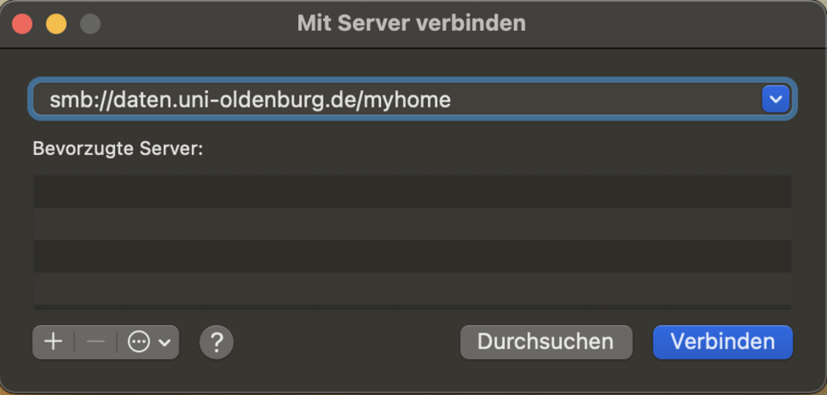 Damit Sie eine Verbindung zu Ihrem Home-Laufwerk erfolgreich herstellen können, müssen Sie sich im Netzwerk der Universität befinden. Beachten Sie hierbei die Informationen zum Zugang zum Campusnetz.