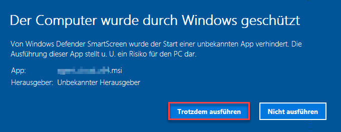 Abhängig von Ihrer Windows-Version kann bei Start der Installation eine Warnung ausgegeben werden, die auf den Schutz des Computers durch Windows hinweist.