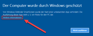 Abhängig von Ihrer Windows-Version kann bei Start der Installation eine Warnung ausgegeben werden, die auf den Schutz des Computers durch Windows hinweist.