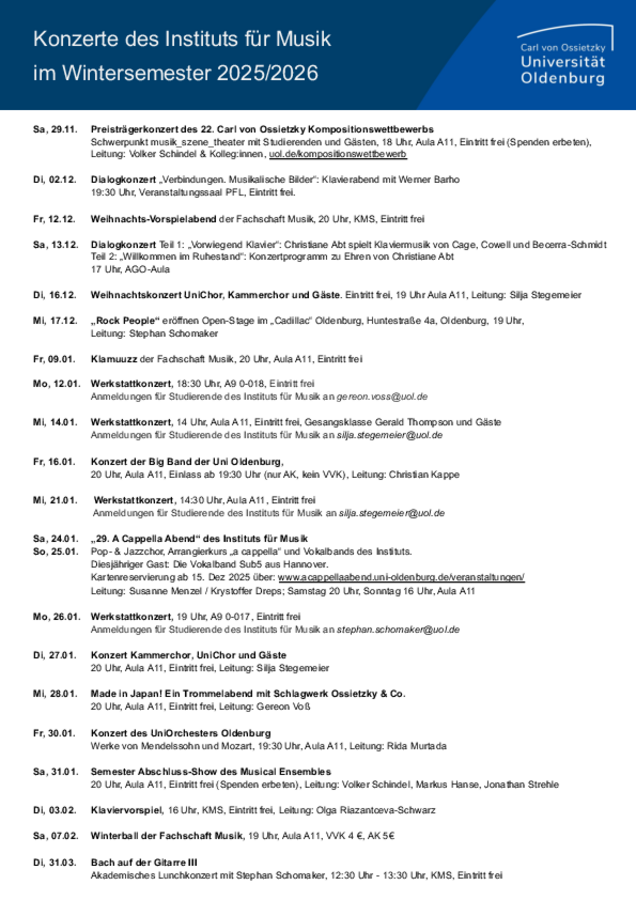 Mehr Infos und Link zur Musikagentur der Uni Oldenburg HIER.