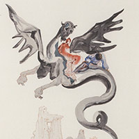 Der Künstler Salvador Dali hat Bilder zu Geschichten entworfen. So auch den Drachen, der in der Göttlichen Komödie vorkommt. Entdeckt die Bildgeschichten von Salvador Dali mit Helmut Feldmann. In der Ausstellung und im Atelier denkt ihr euch eure eigene Geschichte aus und druckt dazu Bilder in einer Hochdrucktechnik.