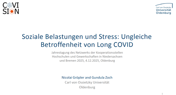 COFONI Arbeitswelt-Monitor – Langfristfolgen der Pandemie, Long/Post COVID und berufliche Ungleichheiten, Netzwerk der Kooperationsstellen Hochschulen und Gewerkschaften in Niedersachsen und Bremen, Kooperationsstelle Hochschule-Gewerkschaften an der Universität Oldenburg, Universität Osnabrück, Peter L. Reichertz Institut für Medizinische Informatik