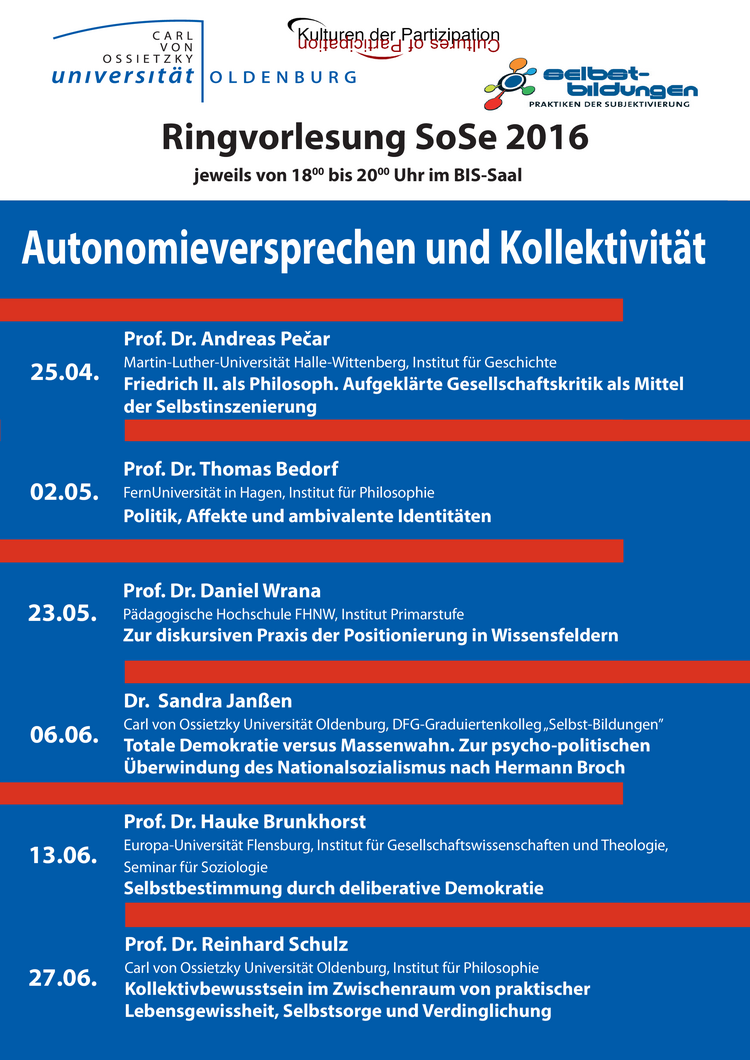 Die Ringvorlesung ist ein Kooperationsprojekt mit dem DFG-Graduiertenkolleg "Selbst-Bildungen - Praktiken der Subjektivierung"