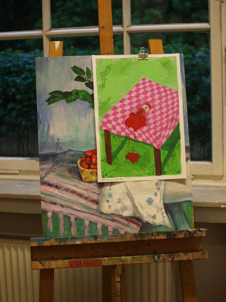 Zeichen- bzw. Malwerkzeuge und verschiedene Bildgründe werden experimentell forschend auf ihre Möglichkeiten hin untersucht. Mit Klebeband lässt sich ebenso zeichnen wie mit Kugelschreiber, Feder oder dem Zeichentableau am Computer. Malen kann man mit Pinsel, Spachteln, Tüchern oder dem eigenen Körper.