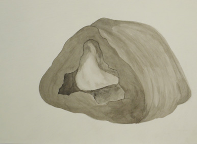 Katarzyna Klar baut eine Gruppe verwandter abstrakter Formen aus Ton und nimmt diese zum Ausgangspunkt für Zeichnungen.