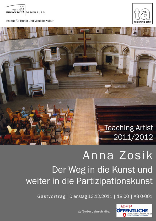 Die britisch-ugandische Künstlerin Emma Wolukau-Wanambwa ist im November 2012 zwei Wochen zu Gast, auf Einladung des Instituts für Kunst und visuelle Kultur und EMMIR (European Master Migration and International Relations). Eine Kooperation mit dem Edith Russ Haus für Medienkunst, Oldenburg.
