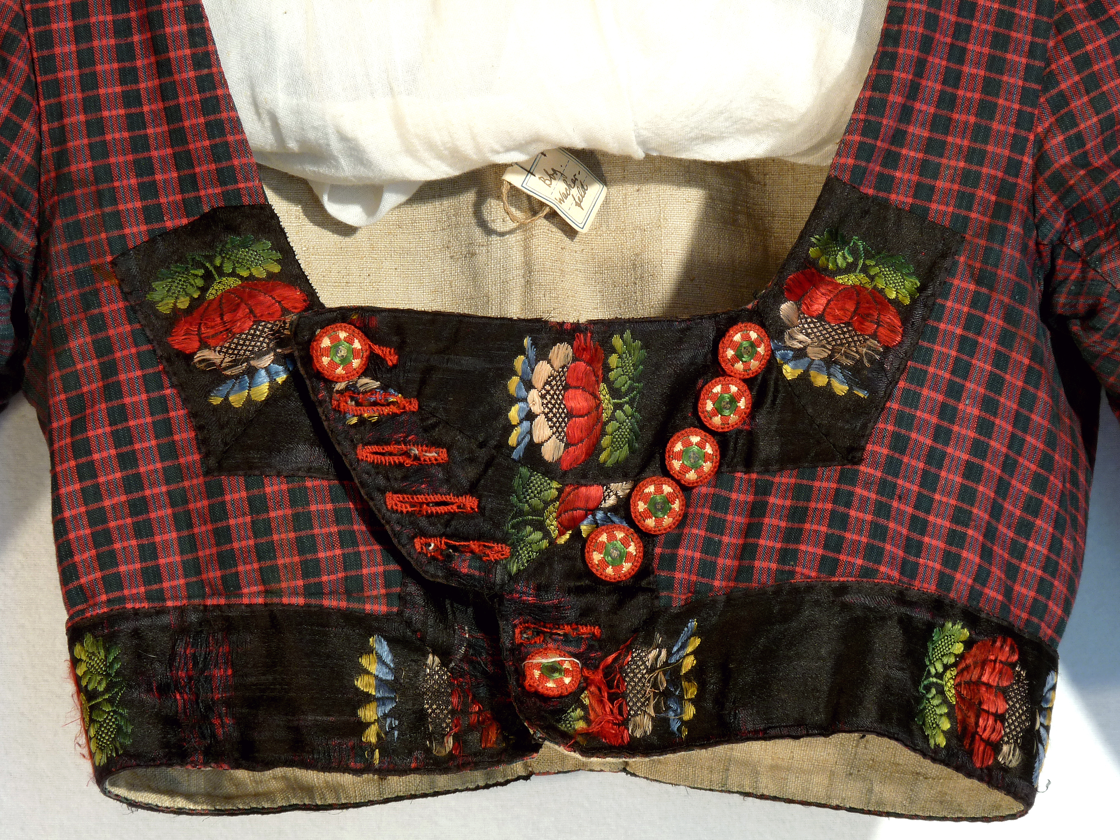Im Seminar beschäftigten sich die Studierenden aus unterschiedliche Perspektiven mit den Objekten. Dabei ging es zum Beispiel um Fragen nach Transkulturalität (Tracht kann als globales Phänomen beschrieben werden), um Tracht als Konzept, das immer Zugehörigkeit und Abgrenzung zugleich in sich vereint, und um Tracht als Konstrukt, das extern definiert aber von innen heraus auch ‚befüllt’ und beflügelt wird. Es ging aber auch um Fragen ausgehend von den einzelnen Objekten in ihrer spezifischen Materialität, die nichts mit ihrer Zuschreibung als ‚Tracht’ zu tun haben: Wie funktioniert eigentlich Perlstricken, woher kamen die Stoffe, Garne oder Perlen und wie lange dauert es, um ein Schultertuch zu besticken? Welche Tragespuren lassen sich am Objekt finden und welchen Aufschluss geben sie über Nutzungspraktiken oder die Körperlichkeit der Tragenden? Welche Spuren der Handhabung und Lagerung lassen sich auch bis zur Zeit ihrer Musealisierung finden, die wir als Schadensbilder bezeichnen – zum Beispiel Mottenfraß oder Lichtschäden?